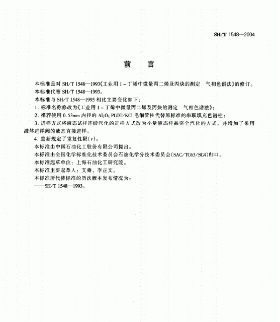 本標準規定了用氣相色譜法測定工業用1一丁烯中微量丙二烯及丙炔的含量。