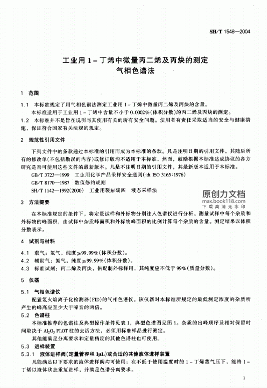 本標準適用工業用1-丁烯中含量不小于0.0002%(體積分數)的丙二烯及丙炔的測定。
